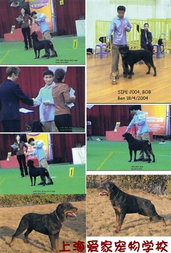 也许我的专业水平还算可以吧,竟然我们一问一答式的谈论有关罗维娜知识,谈了晚上七点,最后在他离开我们学校说:“我已经找了好多训狗学校了,你是最专业的了,不过还是要吸收一些发达国家的训罗维娜的理念了”。(这是后来的事了:2005年帮我们出资请来了法国比利时训练专家到我们学校讲学)并把Ben也留下来了学习了。 真很庆幸能收到血统纯正,身价不菲,又这么聪明的狗狗学员了!